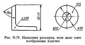Если дано только одно изображение детали, то размер ее толщины или длины наносят, как показано на рис. 11.59.