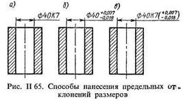 1) условными обозначениями полей допусков, например: 12f9; 40K7 (рис. П.65, а);