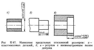3) для размеров уступов с несимметричным полем допуска (рис. 11.67, б, в).