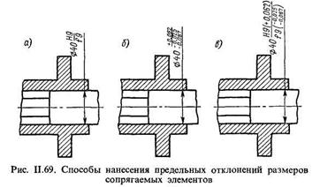 Предельные отклонения размеров сопрягаемых элементов наносят тремя способами:
