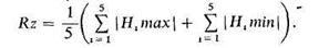 Высота неровностей профиля по десяти точкам Rz – сумма средних арифметических абсолютных значений отклонений точек пяти наибольших минимумов и пяти наибольших максимумов профиля в пределах базовой длины l: