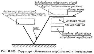 Структура обозначения шероховатости поверхности показана на рис. 11.106.