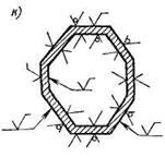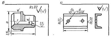 Примеры нанесения знаков шероховатости на различных поверхностях приведены на рис. 11.108, к.