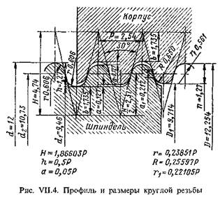 ГОСТ 13536 – 68 распространяется на круглую резьбу для шпинделей вентилей смесителей, туалетных и водопроводных кранов. Профиль и размеры резьбы должны соответствовать указанным на рис. VII.4.