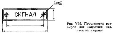 При симметричном расположении надписи относительно контура детали размеры, определяющие расположение надписи, не указывают. Вместо них в технических требованиях записывают предельные отклонения расположения (рис. VI.6).