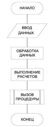 Со временем разработка больших программ превратилась в серьезную проблему и потребовала их разбиения на более мелкие фрагменты. Основой для такого разбиения как раз и стала процедурная декомпозиция, при которой отдельные части программы или модули представляли собой совокупность процедур для решения некоторой совокупности задач. Главная особенность процедурного программирования заключается в том, что программа всегда имеет начало во времени или начальную процедуру (начальный блок) и окончание (конечный блок). При этом вся программа может быть представлена визуально в виде направленной последовательности графических примитивов или блоков (рис. 1).