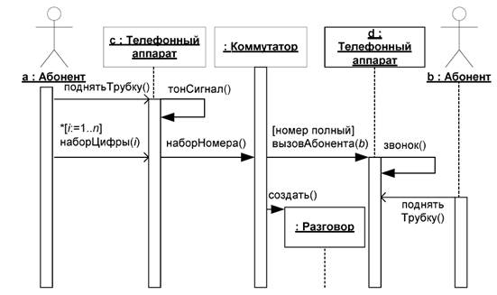 Рис. 47 Графическое изображение диаграммы последовательности моделирования телефонного разговора