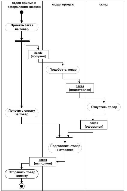 Рассмотрим пример построения диаграммы деятельности для модели торговой компании (рис. 55).