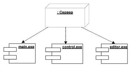 Рис. 63 Диаграмма развертывания с отношением зависимости между узлом и развернутыми на нем компонентами
