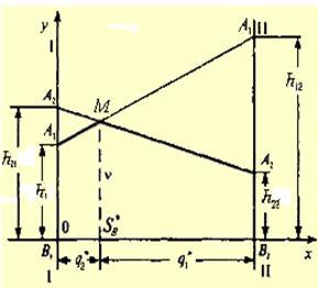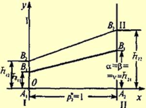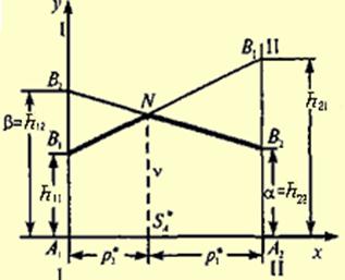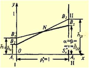 На вертикальной оси II—II отрезок h21 соответствует стратегии B1 , отрезок h22 соответствует стратегии B2 (рисунок 7).