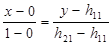 Уравнение прямой B1B1, проходящей через точки (0; h11) и (1; h21):