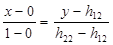 Уравнение прямой B2B2, проходящей через точки (0; h12) и (1; h22):