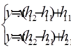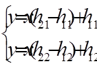 Прямая A2A2, проходящая через точки (0; h21) и (1; h22), удовлетворяет уравнению у = х(h22-h21)+h21.
