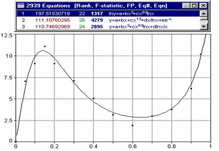 Если произвести сортировку уравнений с помощью критерия Фишера, то “лучшей” станет другая модель. График этой функции показан на рисунке.