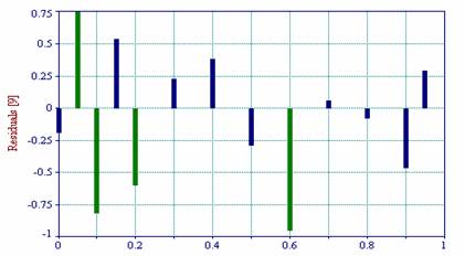 Кнопка Residuals выводит на экран график остатков (разностей между исходными данными и рассчитанными с помощью модели).