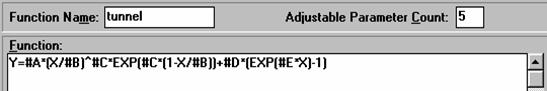 В поле Adjustable Parameter Count указывается количество коэффициентов уравнения модели, в нашем случае их пять (a,b,c,d,e). Поле Function используется для записи нового уравнения регрессии. При этом коэффициенты уравнения помечаются символами #.