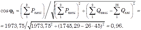 5. Коэффициент мощности объекта в искусственных условиях компенсации реактивной энергии: