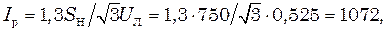 9. Сечение жил кабеля, соединяющего трансформатор с РУ НН0,525 кВ, можно определить по линейному рабочему току вторичной обмотки перегруженного трансформатора ТМ-750/10, А: