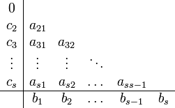 Конкретный метод определяется числом s и коэффициентами bi,aij и ci. Эти коэффициенты часто упорядочивают в таблицу