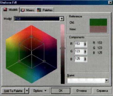 Эта цветовая модель позволяет работать в традиционном режиме, т. е. оперировать цветом не с точки зрения технических устройств, а с точки зрения обычной художественной практики. Когда требуется подобрать определенный оттенок красного цвета, художник не выделяет составляющие его красный, зеленый и синий, а берет тюбик с красной краской, выдавливает некоторое количество краски, а потом в нее добавляет необходимое количество белил и других красок. При этом цвет остается в пределах диапазона красных цветов.