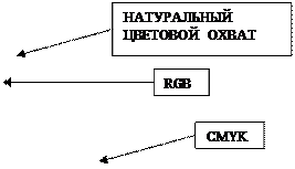 Ограниченность цветового диапозона наглядно представляется при сопоставлении цветовых охватов для рассмотренных цветовых моделей (RGB и CMYK) по отношению к натуральному цветовому охвату.