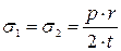 Для определения меридиональных и кольцевых усилий в оболочках конкретного типа достаточно подставить в равенства (1.2), (1.3) радиусы кривизны. Соответствующие напряжения при толщине оболочки t будут равны: