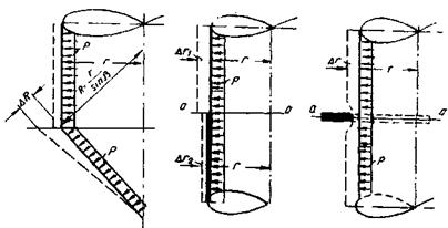 В местах возникновения краевого эффекта в сечениях оболочек, кроме меридиональных и кольцевых усилий, определяемых по безмоментной теории, появляется еще изгиб оболочек, сопровождающийся возникновением изгибающих моментов, поперечных сил и дополнительных меридиональных и кольцевых усилий. Физическими причинами возникновения этих усилий могут быть: