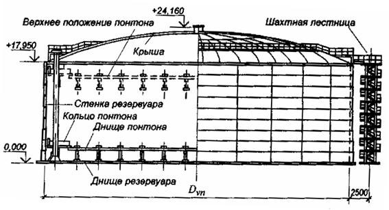 Вертикальные цилиндрические резервуары (рис.2.1) используют при избыточном давлении в паровоздушной зоне до 2 кПа и вакууме до 0,25 кПа.