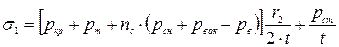 Тогда суммарные кольцевые напряжения в стенке от действующих нагрузок равны;