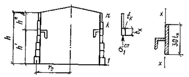 Рис. 22.6. Схема усиления стенки резервуара кольцами жесткости