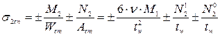зависит от рассматриваемого расчетного случая: минус - при сочетании нагрузок: собственный вес кровли и стенки, снеговая нагрузка, вакуум; плюс - при сочетании нагрузок: собственный вес кровли и стенки, избыточное давление, ветровой отсос.
