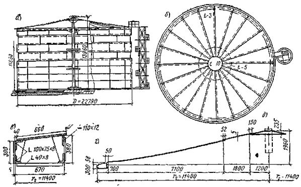 Рис. 22.9. Стальной вертикальный цилиндрический резервуар объемом 5000 м3 с висячей кровлей