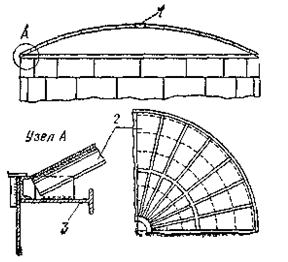 Рис. 22.10. Схема сферического покрытия резервуара, собираемого из секторных щитов