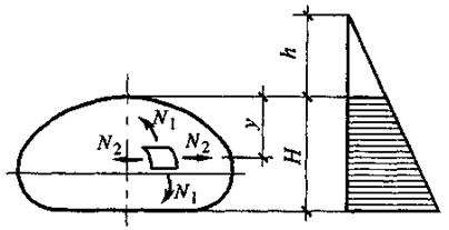 Характер распределения усилий от избыточного давления и от гидростатического давления жидкости приведены на рис. 2.20.