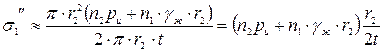 - напряжение от избыточного и гидростатического давления на днище: