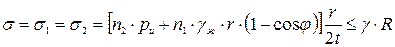 Усилия в оболочке при воздействии избыточного расчетного давления определяют по формуле