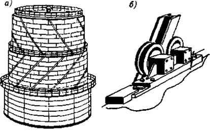 К многослойным сосудам давления относятся также сооружения, создаваемые спирально рулонным способом. На центральную трубу наматывают с предварительным натяжением или с предварительным нагревом стальную полосу по спирали без зазора между витками. Каждый последующий слой навивают в направлении, обратном предыдущему. Связь слоев между собой получается фрикционной.