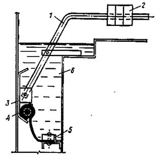 Последние (рис. 3.4) получили наибольшее распространение в отечественной практике. С помощью рычага 1 с грузами 2 прижимное эластичное кольцо 3 сфартуком 4, 5 удерживает газгольдерное масло 6 внутри затвора. Часть масла просачивается через неплотности затвора и стекает по стенкам вниз, попадая в кольцевой желоб на днище газгольдера. После очистки масло по наружному трубопроводу подается наверх, откуда через отверстия в стенке корпуса газгольдера стекает по внутренней поверхности стенки в затвор.