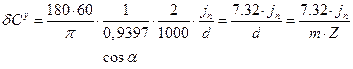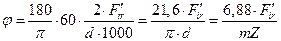 - это кинематическая погрешность при зацеплении с идеальным колесом. Она дается в таблице в мкм по делительной окружности в зависимости от степени точности и диаметра (таблица в методичке №2413). Конструктору удобно пользоваться величиной кинематической погрешности в угловых минутах, поэтому табличные значения переводят в угловую величину: