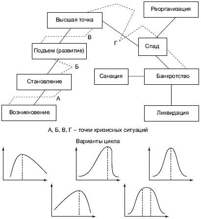 Фирма не оформилась окончательно, но уже поставляет на рынок экспериментальные образцы, новые идеи или услуги, зондирует рынок на предмет спроса. Это, как правило, рискованная деятельность. Поэтому здесь существует опасность кризиса, которая заключается в том, что фирма может исчезнуть уже на этапе ее возникновения. Кризис может быть быстротечным и сравнительно легким. К нему готовы, поэтому имеется прикрытие: фирма пока находится в структуре другой фирмы, более крупной и устойчивой (рис. 4.2).