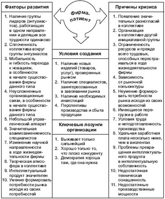 Патиенты крайне агрессивны в своих действиях и не обращают внимания на окружающую среду, поскольку им необходимо «захватить» определенную нишу рынка и доказать свою состоятельность. Эти фирмы с точки зрения решения вопросов предотвращения кризисов наиболее трудноуправляемы. Их агрессивность может компенсироваться только предпринимательской культурой всего общества.