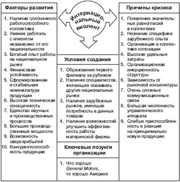 Интернациональный виолент возникает как продолжение развития национального посредством открытия филиалов за рубежом, освоения других национальных рынков сбыта и вынужден действовать по правилам мирового рынка (рис. 4.5). Специфическая проблема России, которая не решена до настоящего времени, – это стремление более развитых в экономическом отношении стран перевести в Россию экологически грязные производства, что в конечном счете ставит под угрозу ее национальную безопасность.
