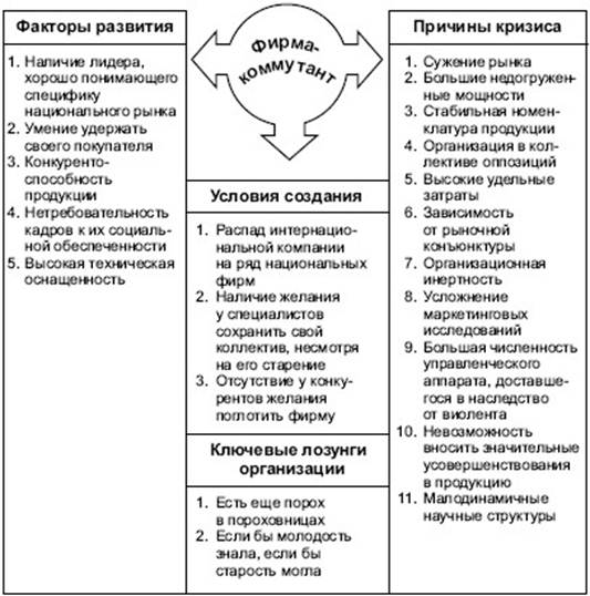 Так появляются фирмы-коммутанты (рис. 4.6), осуществляющие средний и малый бизнес, ориентированный на удовлетворение конкретных региональных потребностей, индивидуализированный подход к клиентам, использование достижений фирм-виолентов.