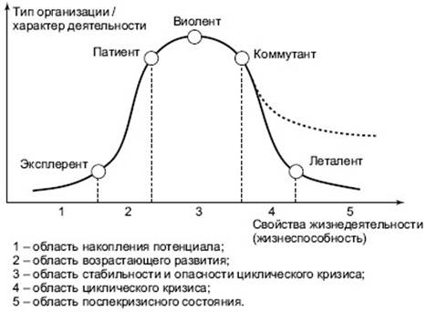 Лекция № 4. Факторы рискованного развития организации. Возникновение кризисов в организации. Общие и особенные причины возникновения кризисов.Тенденции циклического развития организации (эксплерент, патиент, виолент, коммутант, леталент).