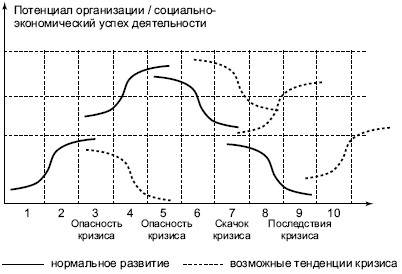 Возникновение потенциала отдельного развития рождает опасность кризиса – но не всегда разрушительного. Это может быть кризис обновления, кризис ускорения, кризис поиска. Кризис характеризует ключевое противоречие развития.