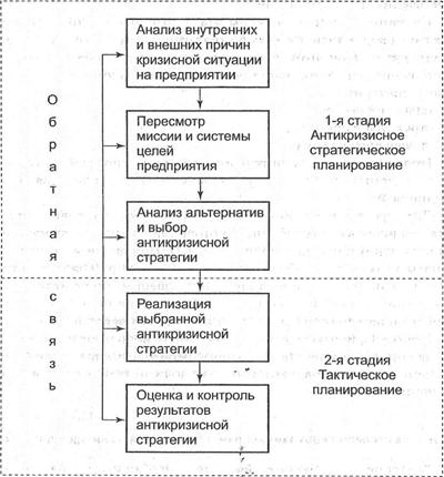 Выход из кризиса российских предприятий связан с устранением причин, вызвавших его, а сам процесс планирования этого выхода можно назвать стратегией (антикризисное стратегическое планирование) и тактикой (оперативное планирование) антикризисного управления.