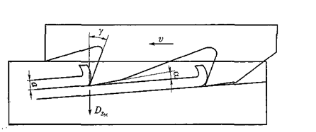 Более благоприятной является схема резания, при которой у каждого зуба в работеучаствует только одна вершина. Для этого делают «развод» зубьев под углом наклона режущей кромки (рис. 3.28).