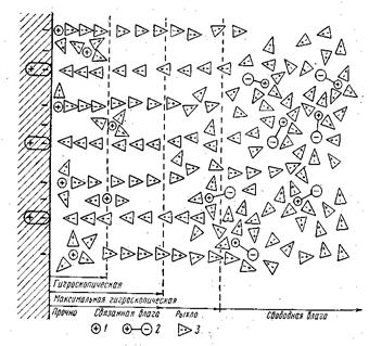 1 – пленочная адсорбированная влага; 2 – внутрипромежуточная влага;