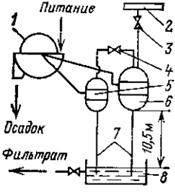 Схема вакуум-фильтровальной установки с самотечным удалением фильтрата