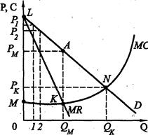 В результате его рента увеличится до LMKN, тогда как рента потребителей сократится, очевидно, до нуля. Иначе говоря, вся рента потребителя будет присвоена монополистом.